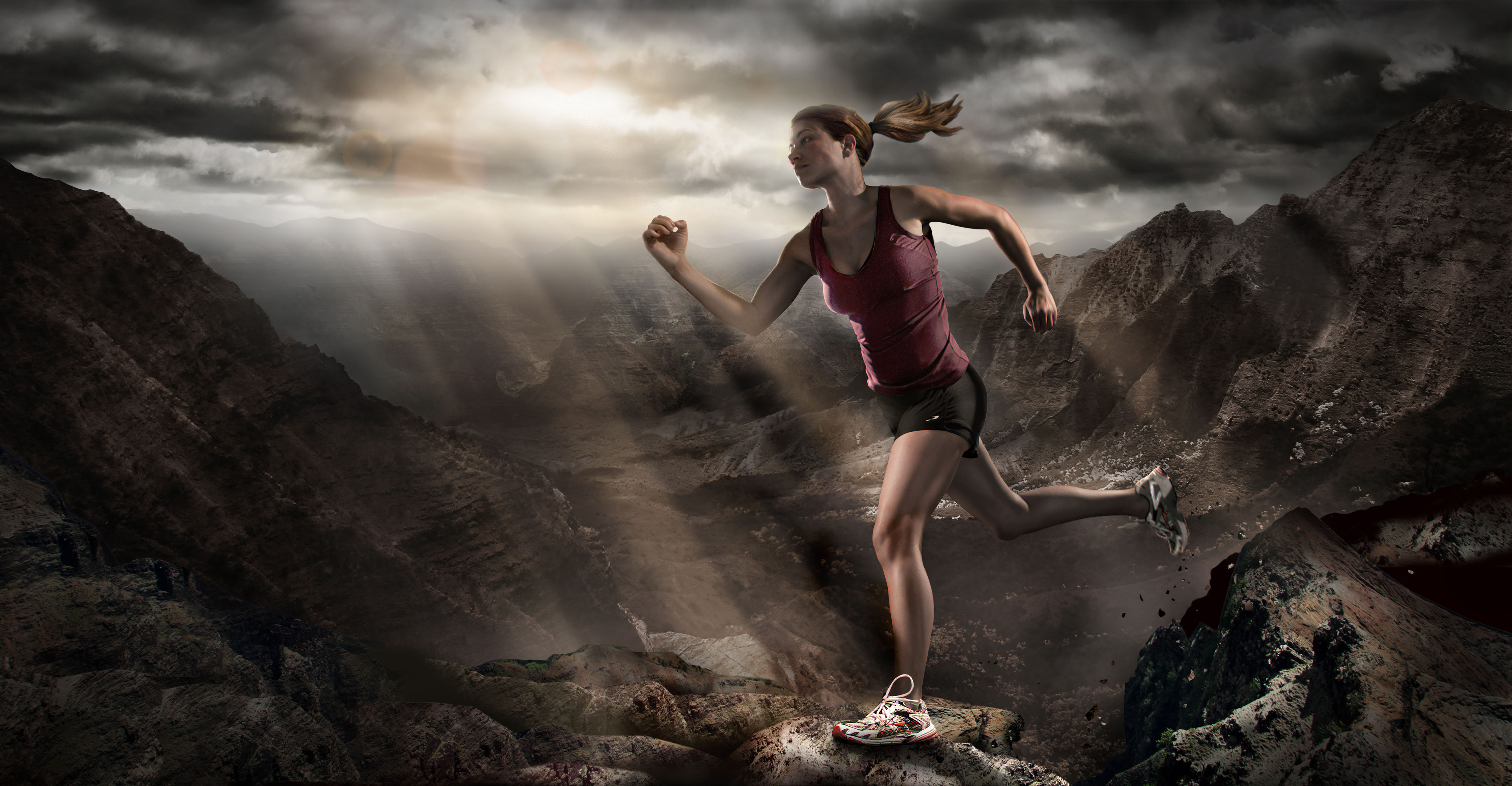 The art direction focused on powerful landscape, dramatic skies, and strong lighting on an athlete in action
