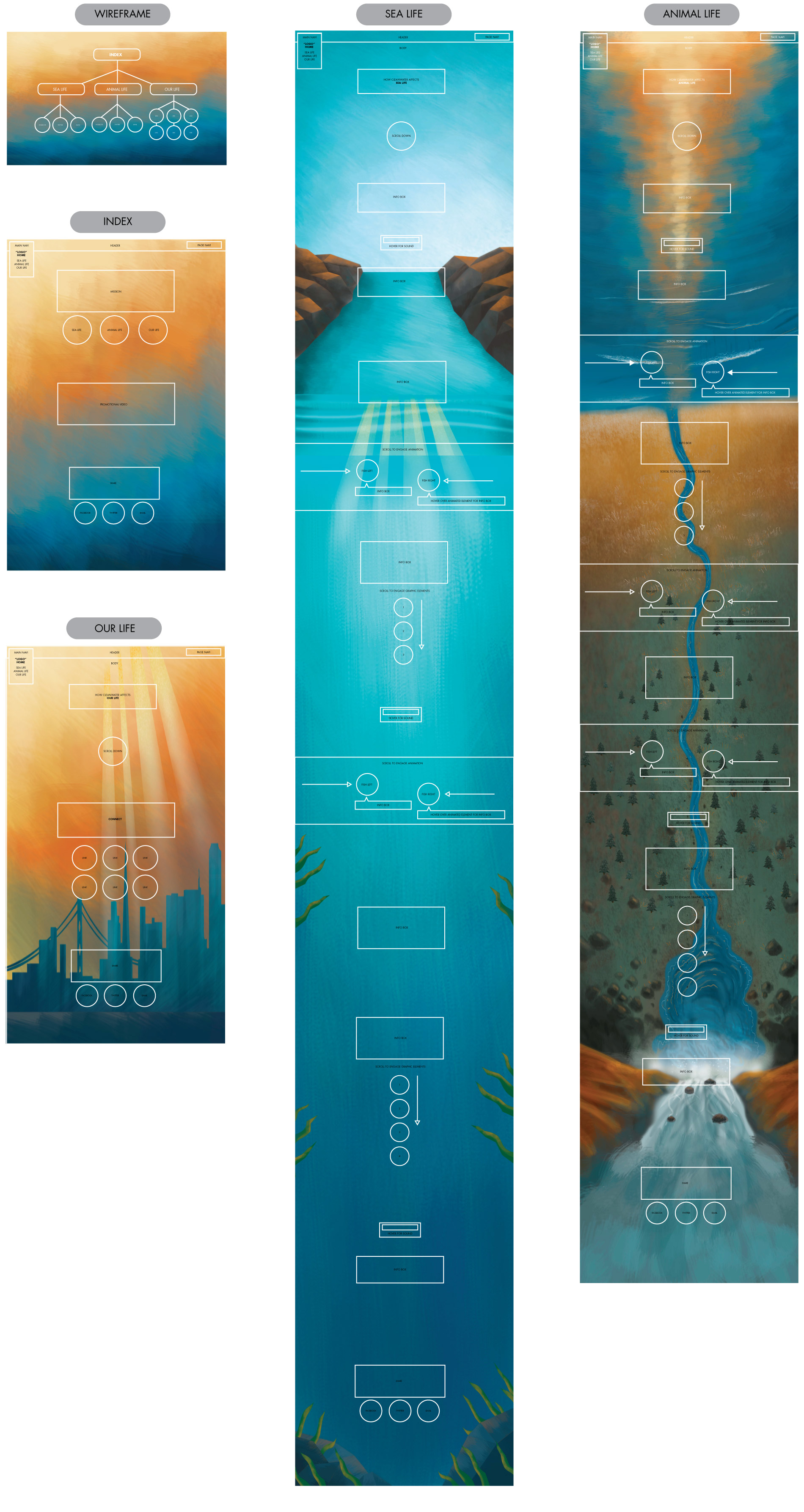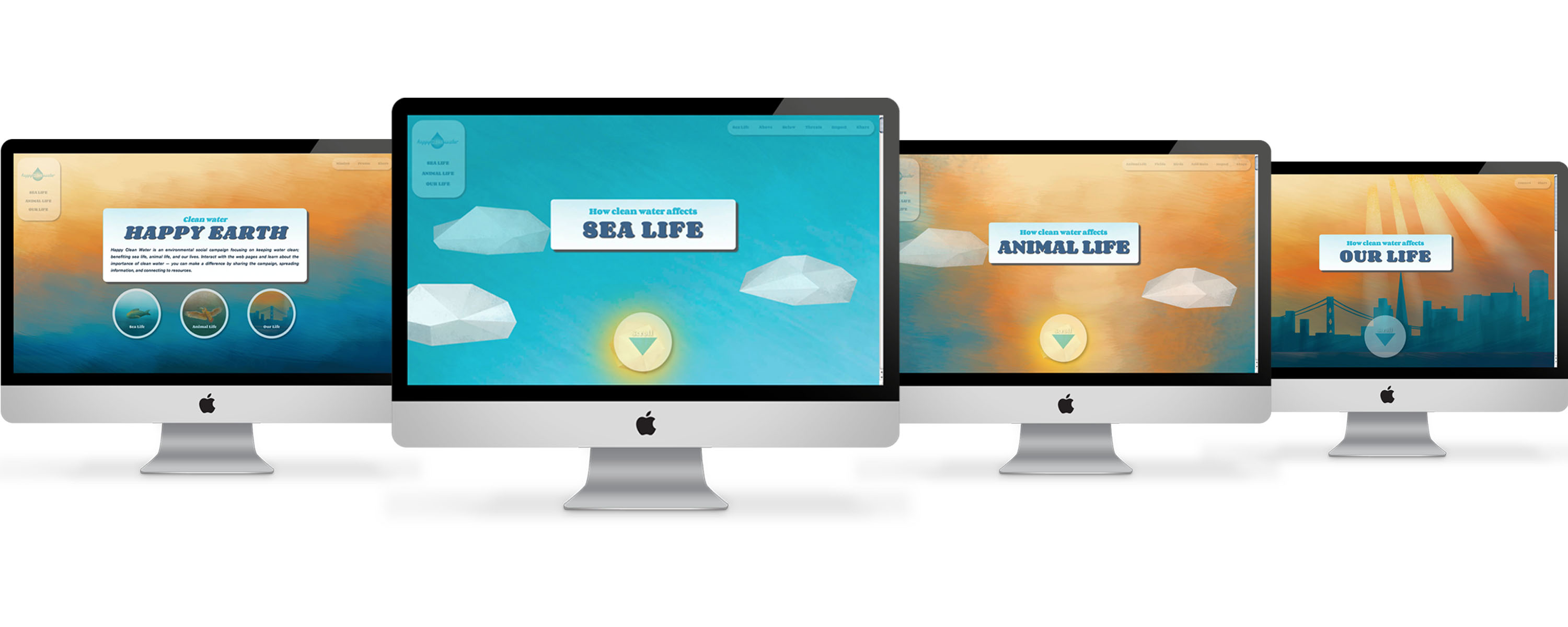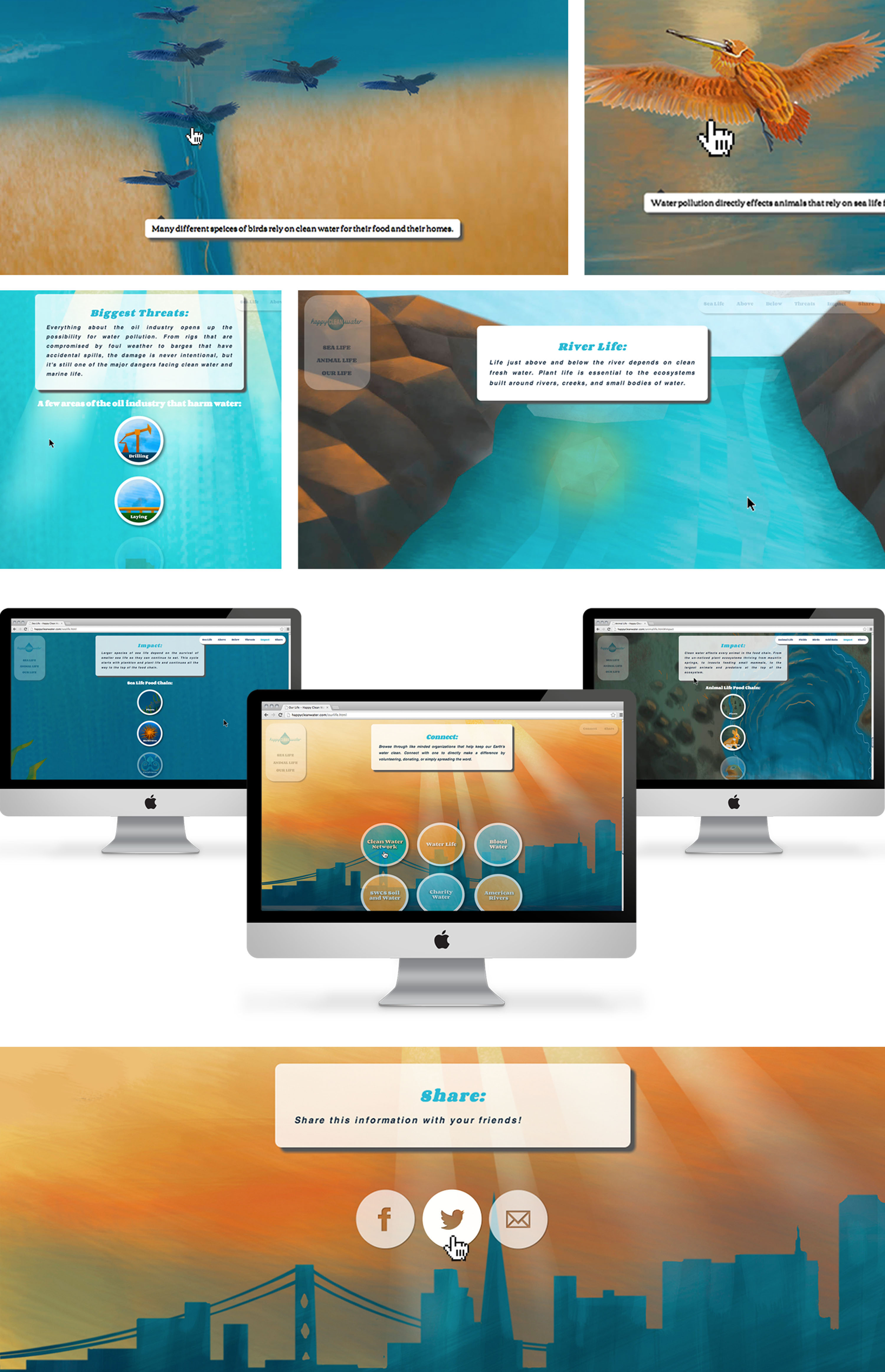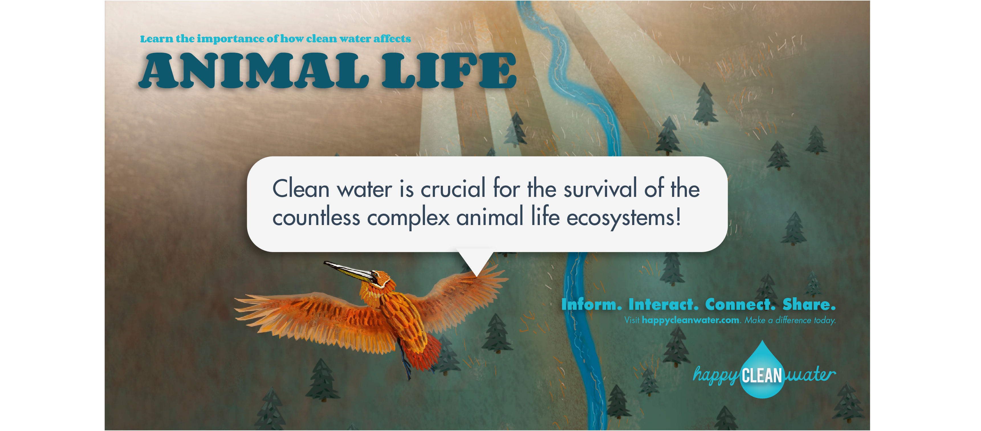 Happy Clean Water is an environmental social campaign focused on keeping water clean; benefitting sea life, animal life, and our lives. Through the organization's online presence, Happy Clean Water captures viewers with informational interaction and engaging motion. It gives viewers the chance to make a difference by sharing the campaign, spreading information, and connecting to resources.