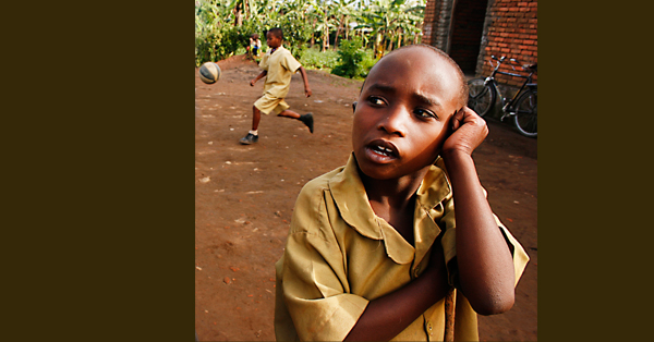 Rwandan boy in between soccer games at school. Photo courtesy of Hanna Stevens.